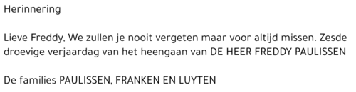 Si vous souhaitez devenir un (co) administrateur, contactez-nous via inmemoriam@lavenir.net. Visitez notre FAQ pour plus d'informations.