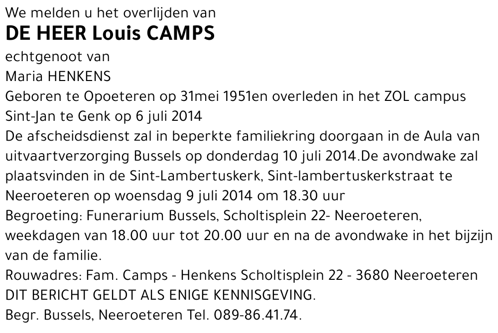 Si vous souhaitez devenir un (co) administrateur, contactez-nous via inmemoriam@lavenir.net. Visitez notre FAQ pour plus d'informations.