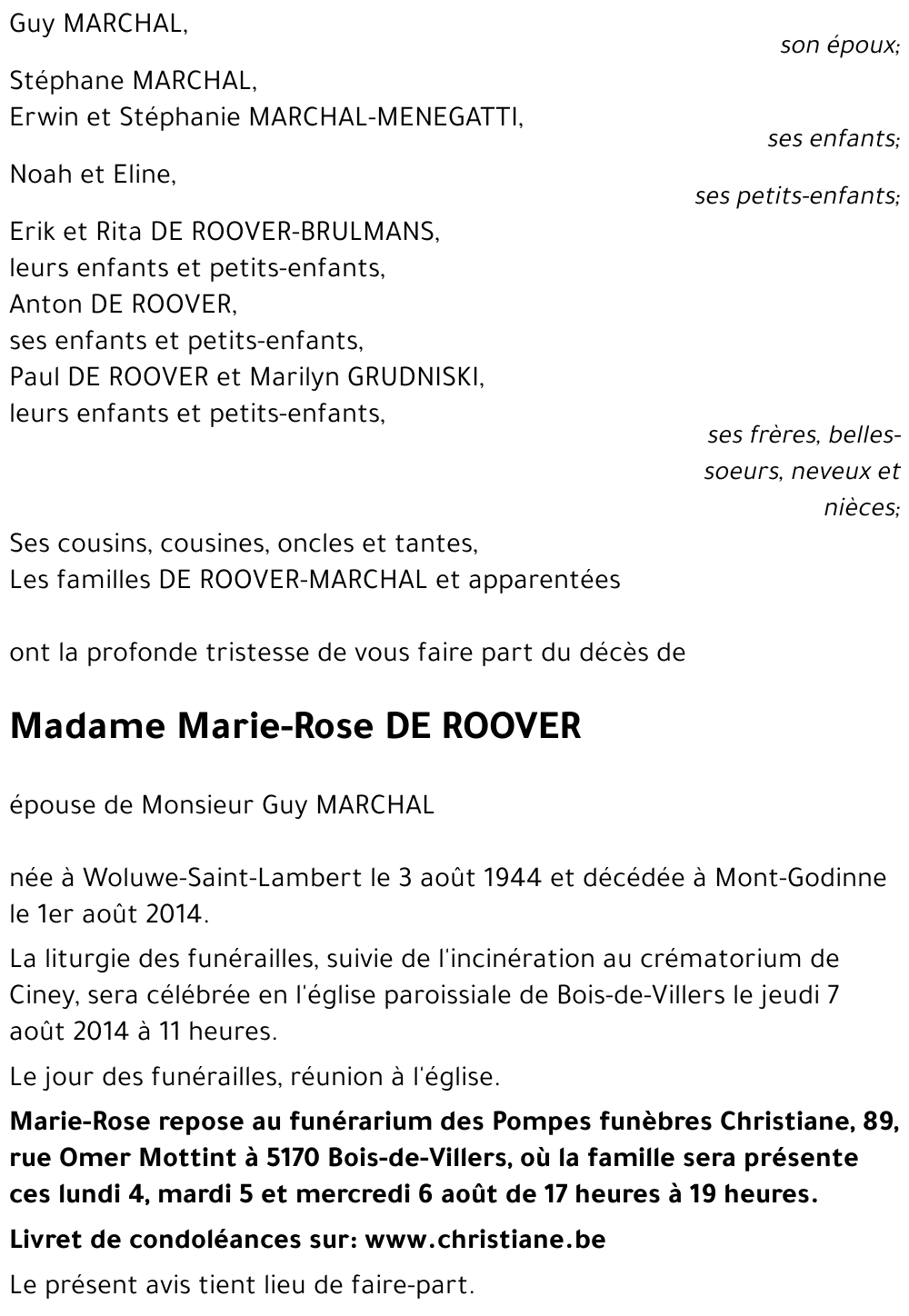 Si vous souhaitez devenir un (co) administrateur, contactez-nous via inmemoriam@lavenir.net. Visitez notre FAQ pour plus d'informations.