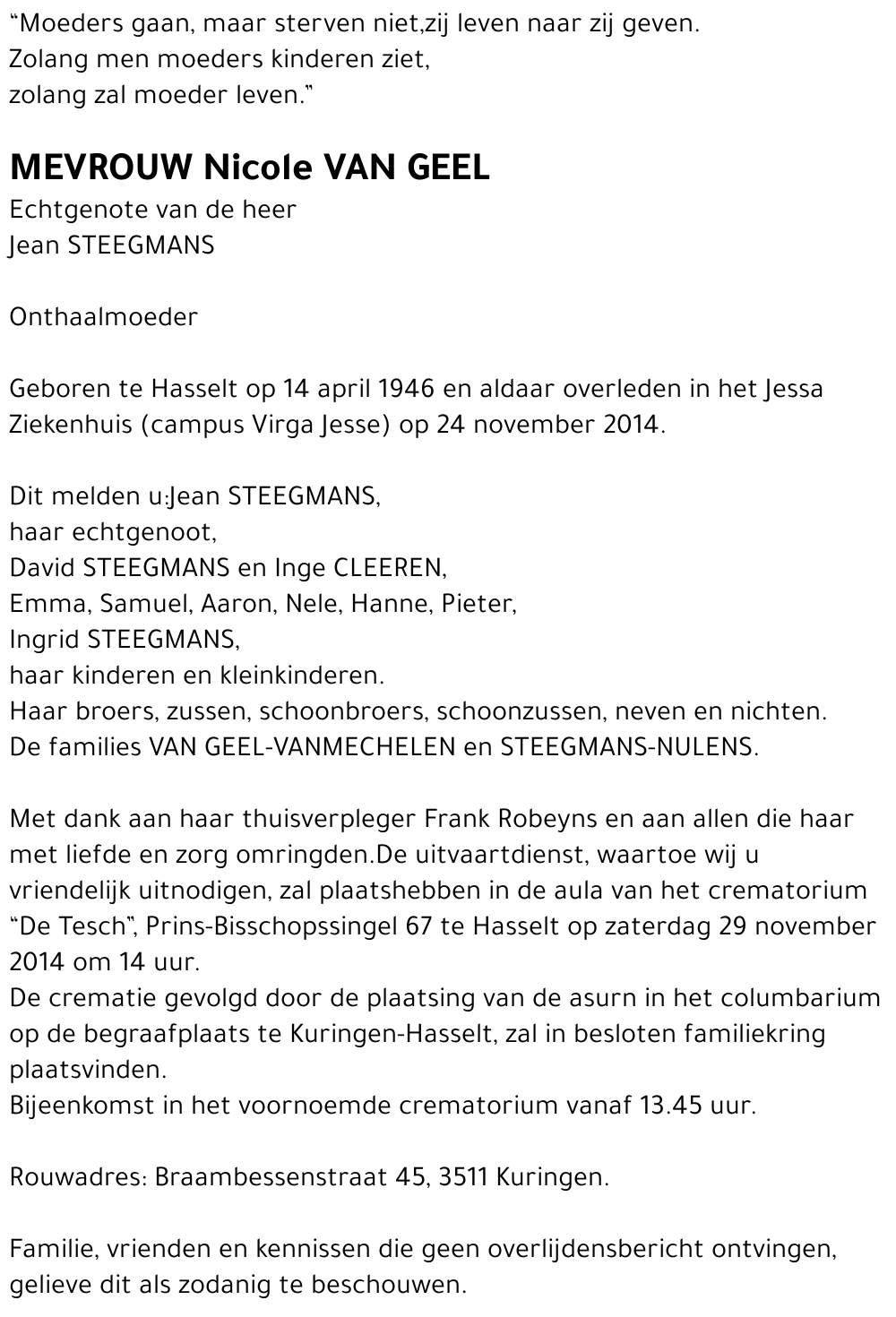 Si vous souhaitez devenir un (co) administrateur, contactez-nous via inmemoriam@lavenir.net. Visitez notre FAQ pour plus d'informations.