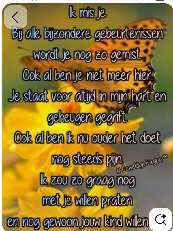 Lieve papan. Het zijn weer droevige dagen die komen 8 jaar geleden moesten we stilletjes je loslaten. Al 8 jaar verdiet. Niets is nog het zelfde. Ik mis je zo ze zeggen verdriet slijt maar dat is niet zo. Nog elke dag mis ik je zo. Hou van je mijn papan voor altijd. Xxxxx je mop laura voor altijd