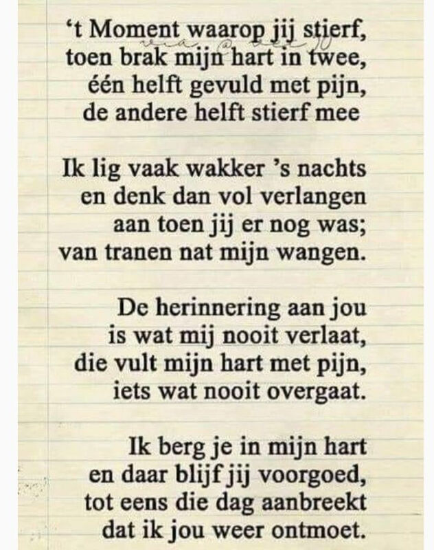 Mijn liefste papan waar ben je nu. Ik heb je zo nodig. Ik mis je zo. Ik hou van je. Mijn liefste papan. Kon ik je maar vast nemen. Xxxx je mop voor altijd Laura