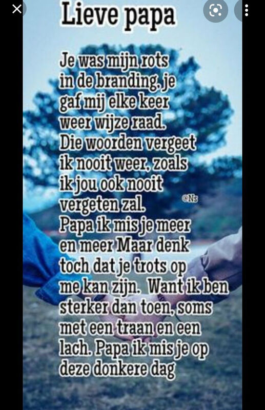 Mijn liefste papan de tranen lopen over mijn wangen 4 jaar geleden moest ik je stilletjes los laten. Je was zo moe. Ik mis je zo hard. Kon ik je nog maar is vast houden. En zeggen hoeveel ik van je hou. Xxxx je mop laura vooral tijd