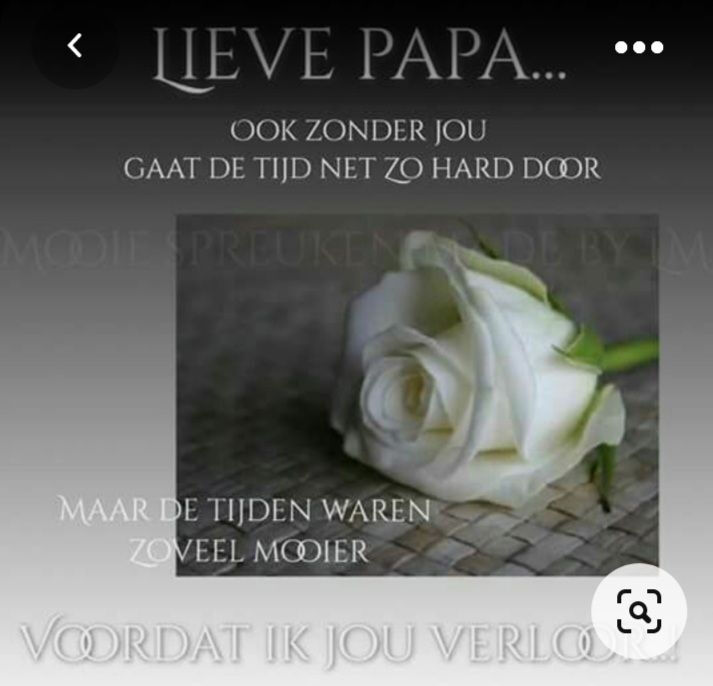 Oooo mijn papan ik mis je zo hard . 4 jaar geleden rond deze tijd was alles nog zo goed en mooi. Was je nog maar hier papan en kon ik je nog maar is vastnemen en zeggen dat ik van je hou papan Xxx je mop laura vooral tijd