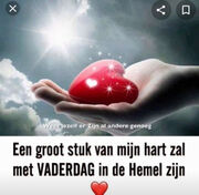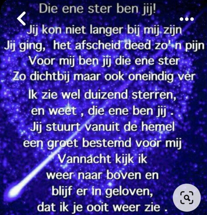 Papan lieve schat wat mis ik je zo hard. Elke dag denk ik aan je en fluister ik je naam. In de week kwam een vlinder op me zitten weet zeker dat jij het was. Ik hou van je papan. Xxxx je mop laura vooral tijd