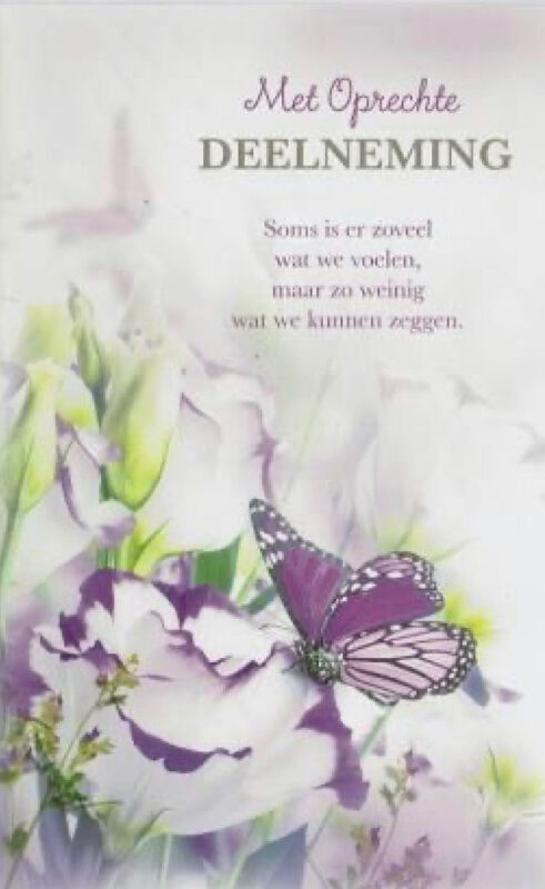 Slechts weinig woorden passen in een tijd van droefheid en pijn.Moge dit gebaar een teken van medeleven zijn. Dikke knuffel. Cyrilla en Peter