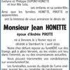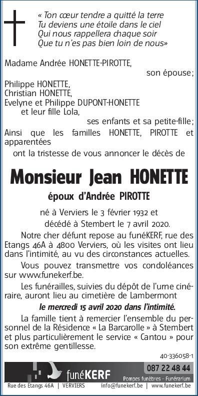 C'est avec grande tristesse que nous venons d'apprendre le décès de Mr Honette . Nous présentons à toute la famille nos plus sincères condoléances , . David et Martine Ringhoffer