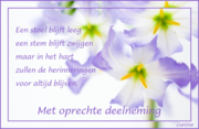 Gecondoleerd bij het heengaan van jullie dierbare. Veel warmte en kracht gewenst in deze moeilijke tijd.