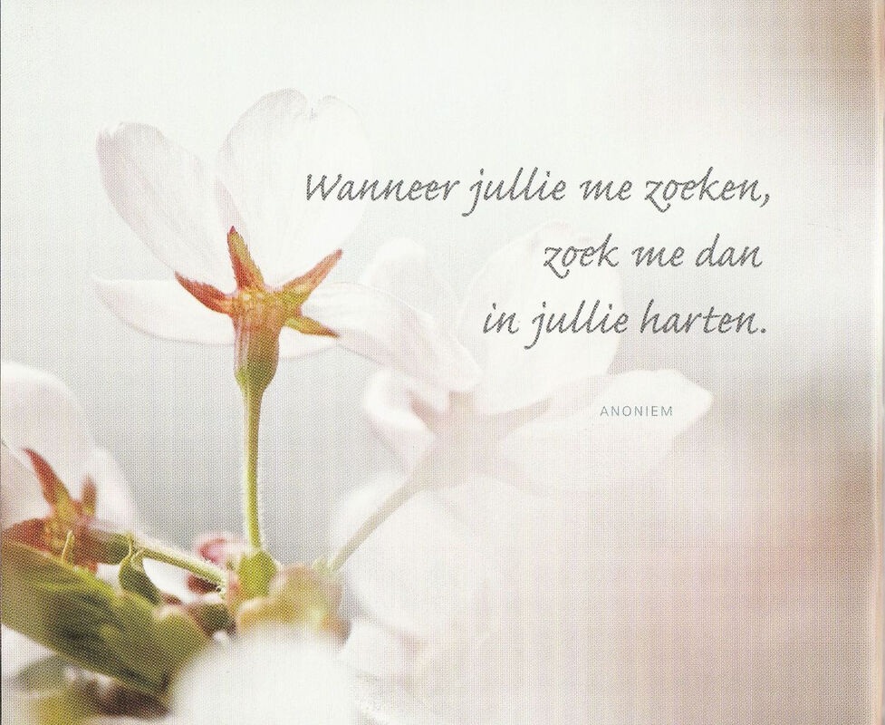 Koester de mooie herinneringen aan hem, zij zullen troost en moed geven om het leven zonder hem verder te gaan.