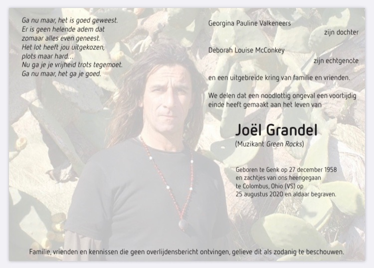 Joël,mijn oude buurjongen,en oude klasgenoot,heb het droevige nieuws vernomen, spijtig dat ik u niet persoonlijk in levende wijze kan controleren,maar langs deze weg ,mijn Innige deelneming,Cateno