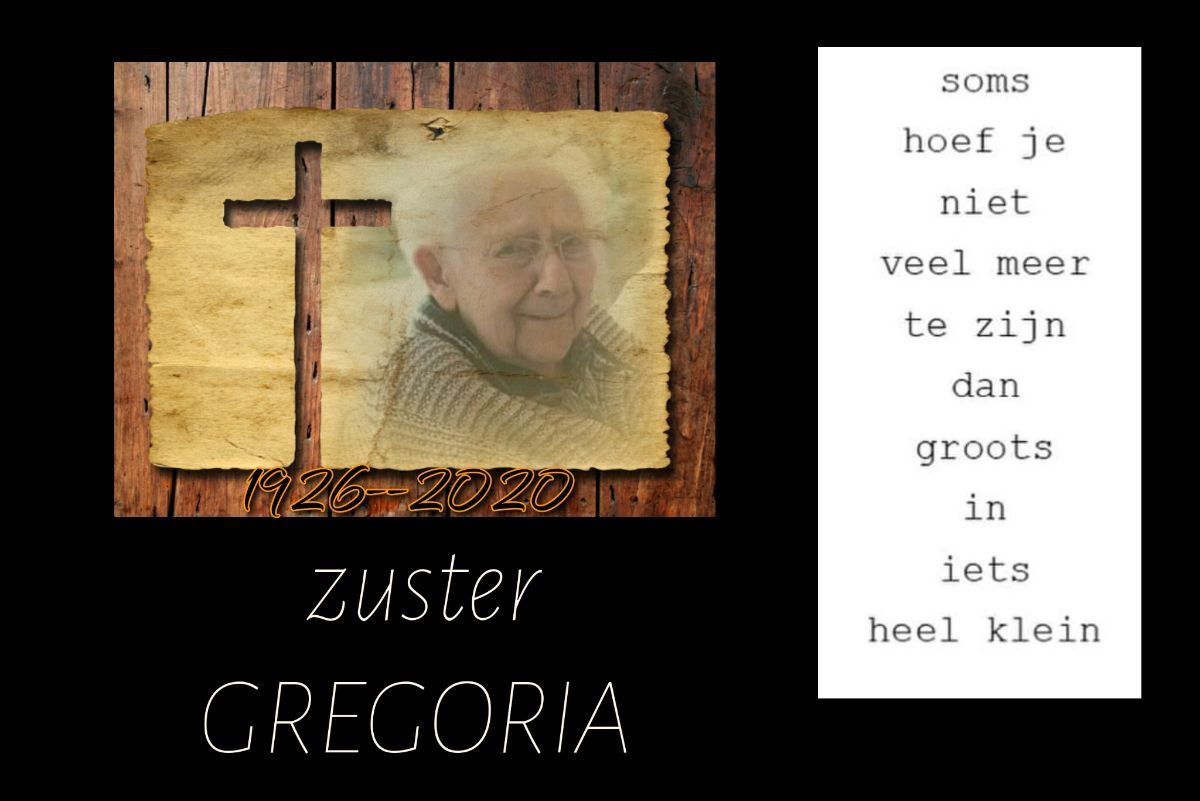 Onze oprechte christelijke deelneming bij het afscheid van zuster Gregoria