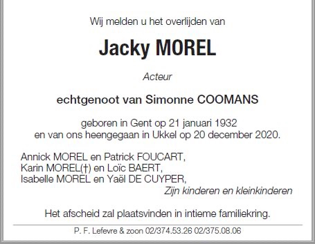 Verbonden in goede en kwade dagen mochten we in de voorbije jaren achter het masker van de acteur Morel ook het verhaal van de mens Jacky ontdekken. Hij kon dat op aanstekelijke manier vertellen. We zullen die kostbare episodes samen met hem hard missen.