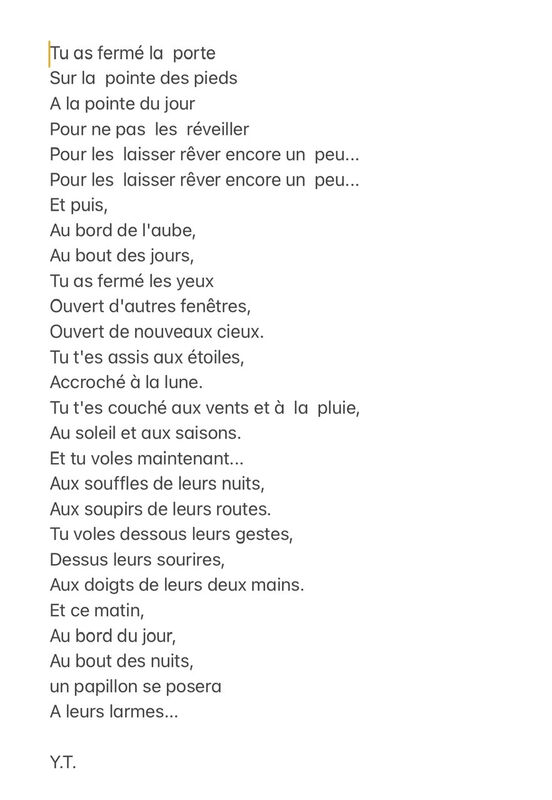 Toutes mes condoléances pour le décès de votre papa. De tout coeur avec vous.