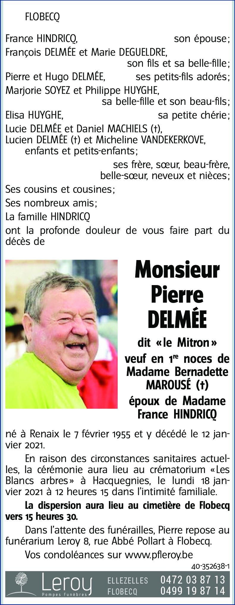 Nous prenons part à la douleur qui vous frappe et vous présentons nos très sincères condoléances. Nous le rencontrions de temps à autre lors de marches Adeps, il va nous manquer.
