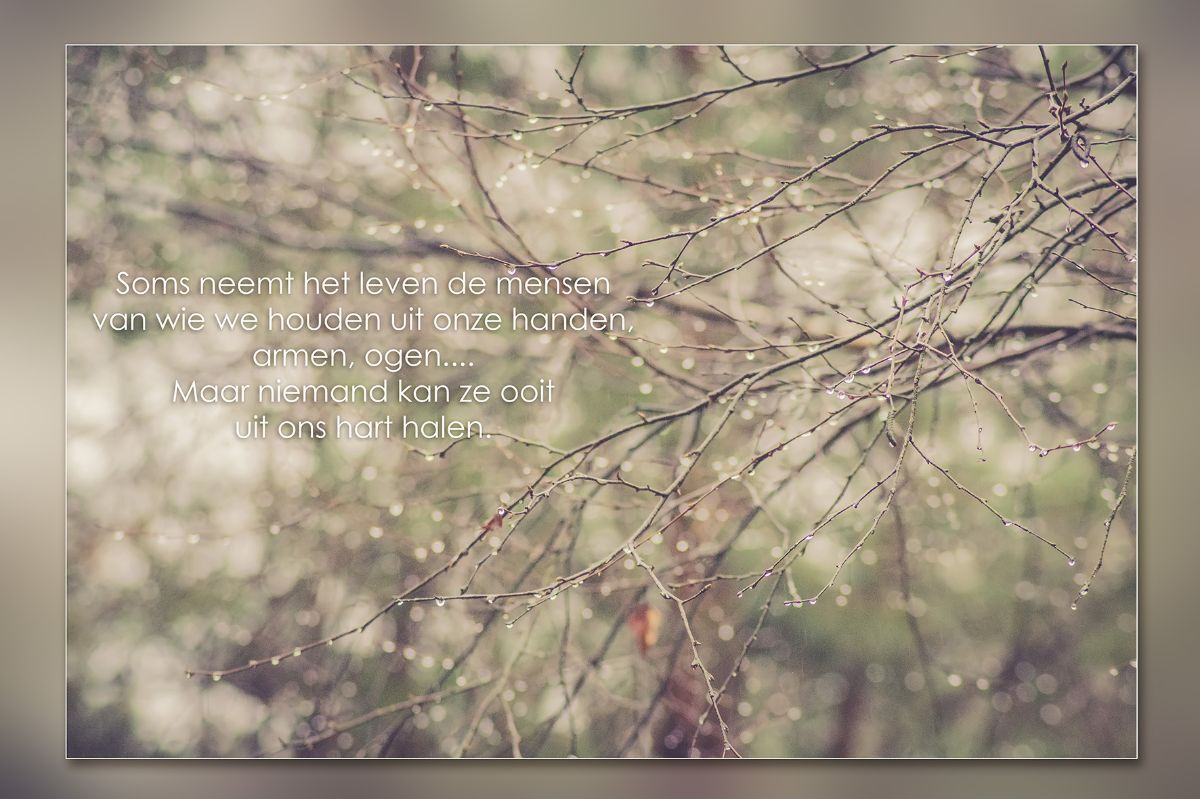 Als ik de woorden kende die je zouden troosten, dan zou ik ze je schrijven . Maar ik weet ze niet dit verdriet.is te groot.