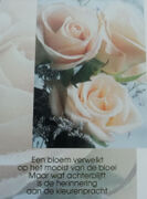 Nooit vragend, nooit klagend, zijn pijn in stilte dragend. Zijn handen hebben voor ons gewerkt, zijn hart heeft voor ons geklopt,zijn ogen hebben ons tot het laatst gezocht.