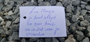 Gisteren bij het wandelen in de bossen en weides van Diepenbeek ter hoogte van de ginderoverstraat vlakbij de Fitlink zagen we een witte ballon in de boom hangen met een kaartje eraan.