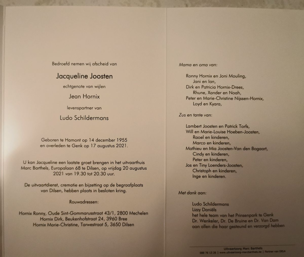 Innige deelneming bij dit overlijden vanwege Frans en Rita van Gerwen Boelaers .