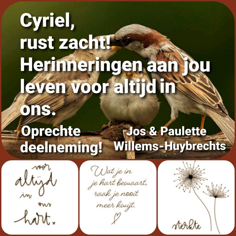 Lieve Cyriel, ik ga je missen. Carine
