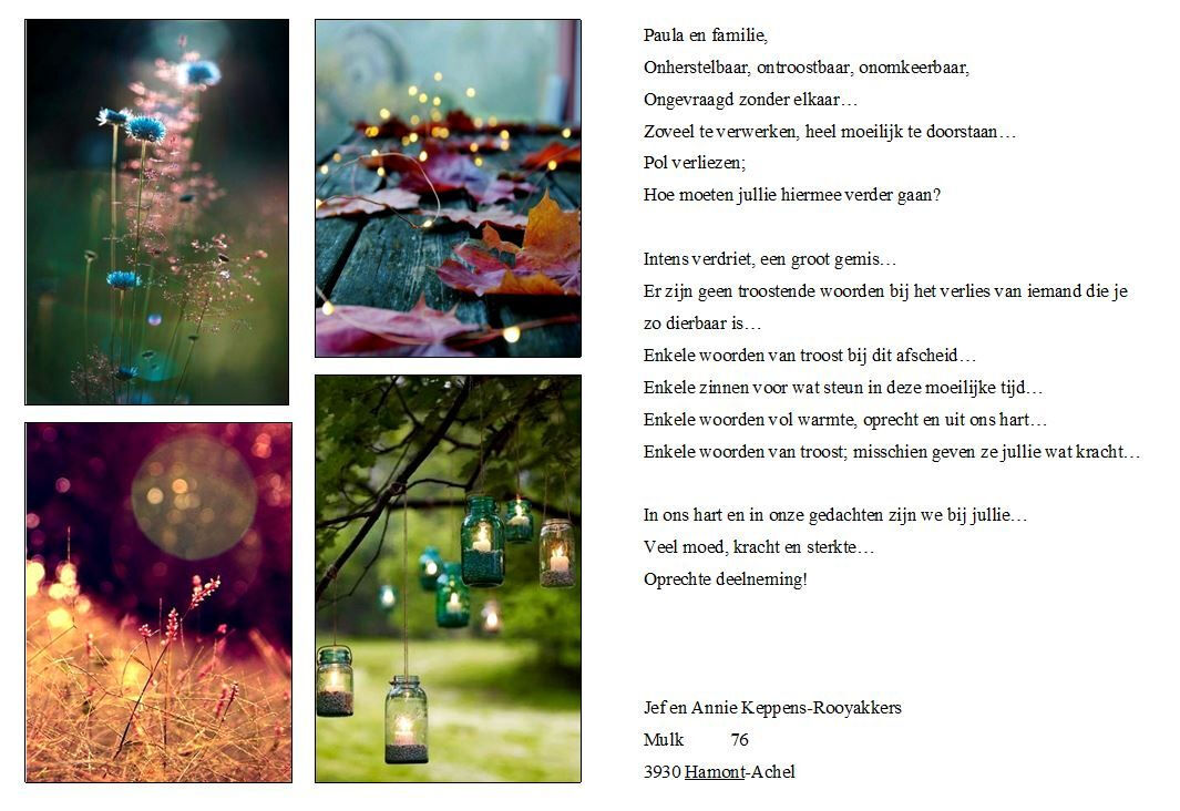 Veel sterkte bij het overlijden van nonke Pol. De hemel is weer een mooie ster rijker...