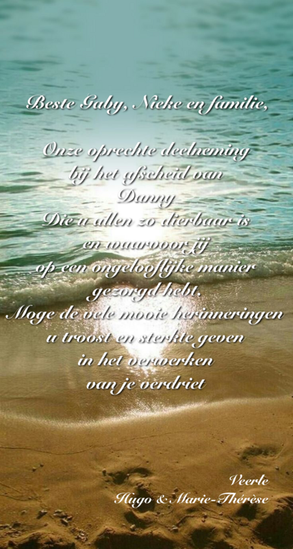 Onze oprechte christelijke deelneming bij het overlijden van jullie dierbare... onze Danny.