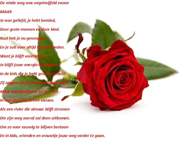 Met eerbied , achting en waardering bieden wij U onze diepe gevoelens van medeleven bij het het heengaan van je dierbare partner en familielid.