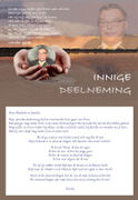 Onze oprechte deelneming. Ik heb nog mooie herinneringen aan jullie papa, van de ontmoetingen met de harmonie. Hij was altijd heel vriendelijk. Ik hoop dat jullie veel troost en steun vinden in de mooie herinneringen. Veel sterkte gewenst aan jullie allen met dit verlies.