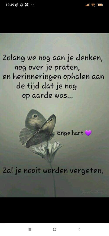 Wanneer je je dierbare verliest blijft er een grote leegte, eenzaamheid en gemis. Maar de liefde, herinneringen, een glimlach,… zijn de dingen die je nooit zullen verlaten en blijven voor altijd diep in je hart. Heel veel sterkte ?