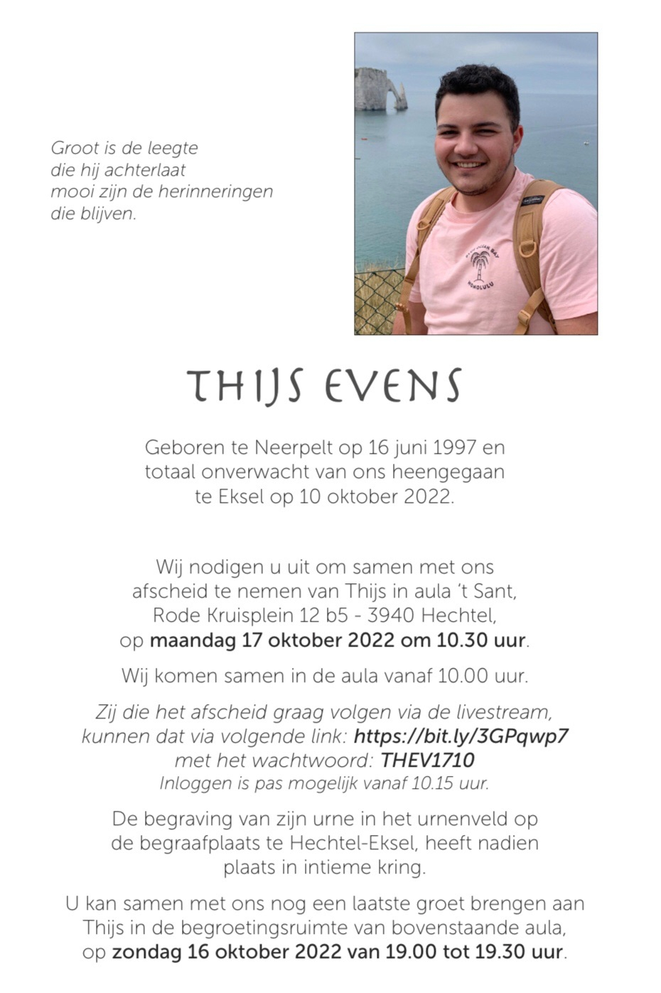 Mijn oprechte deelneming bij het overlijden van jullie lieve Thijs. Koester de mooie herinneringen. Heel veel sterkte.