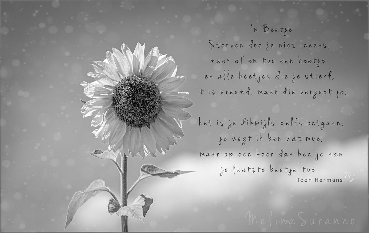 Groot was je liefde,groot het verdriet,mooi de herinneringendie je achterliet...
