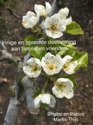 Tevreden stond jij in het leven, graag erbij, steeds een luisterend oor,van negativisme nooit een spoor,bedankt echtgenoot, papa, opa om zoveel liefde te geven.