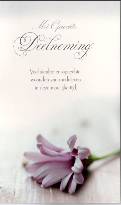Veel sterkte bij het overlijden van uw echtgenote/ moeder/ familielid. Wij zijn in gedachte bij jullie.