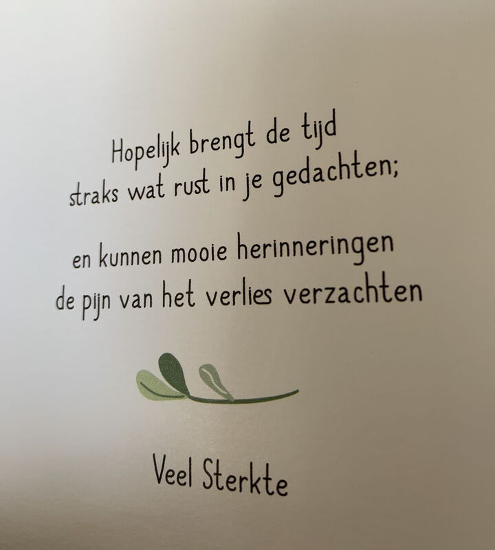 Hopelijk brengt de tijd rust in je gedachten en komen mooie herinneringen de pijn verzachten.