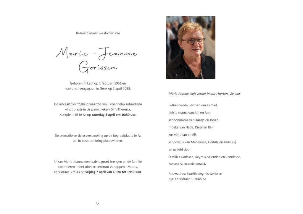 Si vous souhaitez devenir un (co) administrateur, contactez-nous via inmemoriam@lavenir.net. Visitez notre FAQ pour plus d'informations.