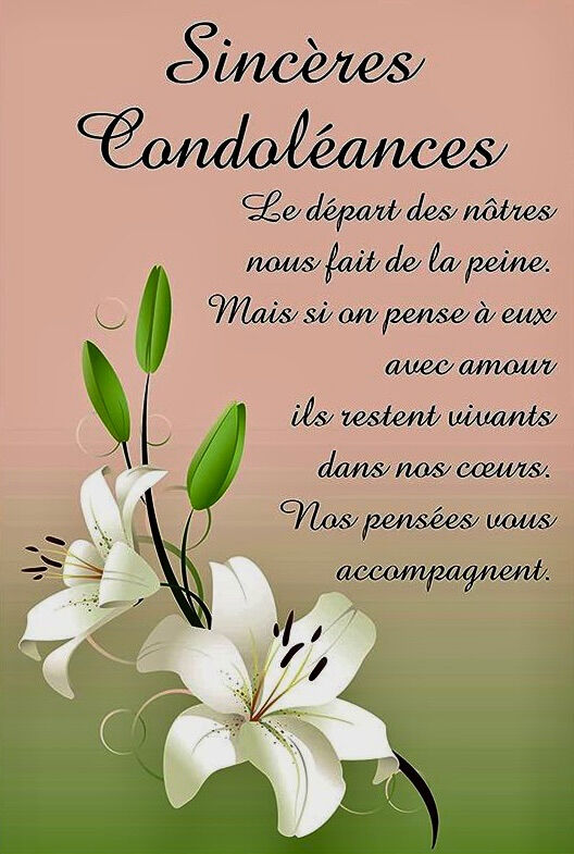 Nous vous présentons nos sincères condoléances; Nos pensées vous accompagnent.