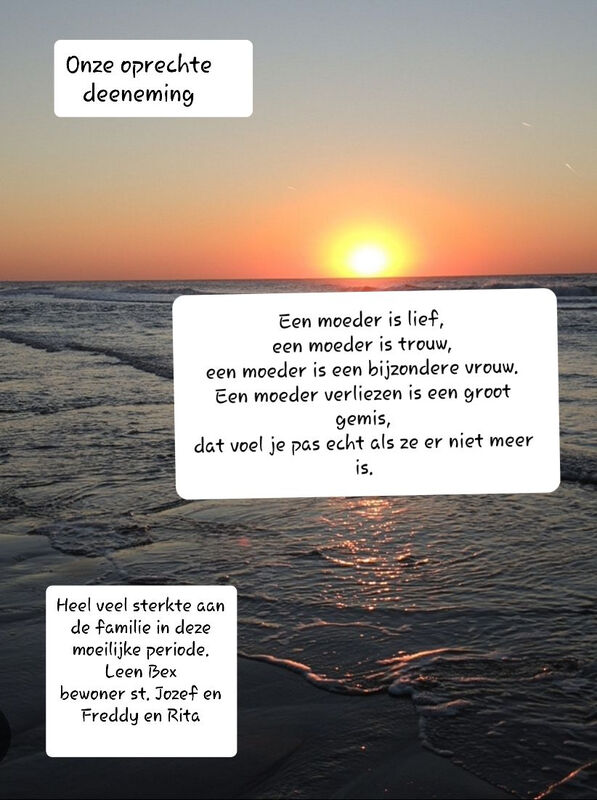 Het bestuur van Okra Lille wenst u veel sterkte bij het verlies van uw dierbare .Moge de mooie heinneringen aan haar voor jullie een troost zijn .