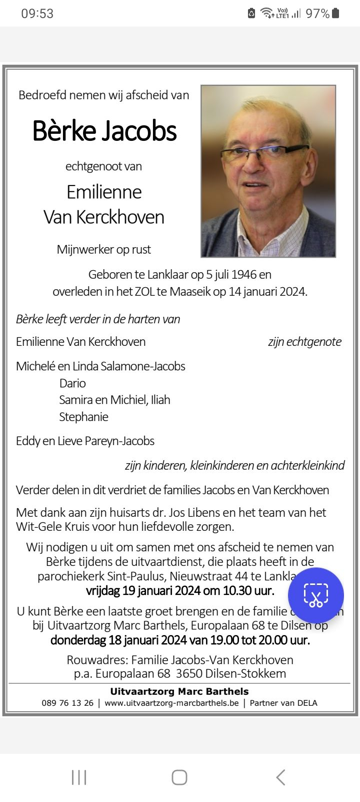 Onze innige deelneming aan Emilienne en Linda,Lieve en kleinkinderen. Michel en Liberte Hermans. Tans.