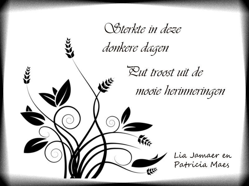 Heel veel sterkte voor jullie in deze weeral heel moeilijke tijd. Jullie zullen haar blijven herinneren als een lieve moeder,oma die jullie zo dierbaar was.