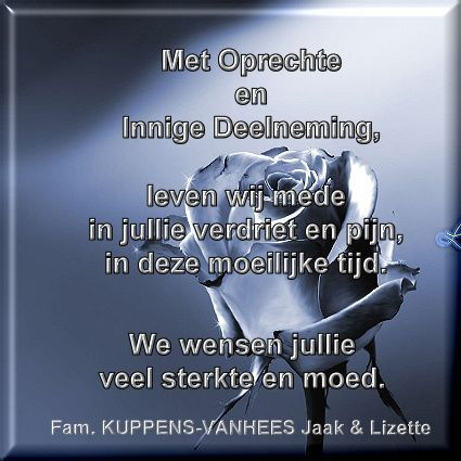 Roza en familie onze oprechte deelning met dit groot verlies en veel sterkte. Koester de mooie dingen. Marcel en Roza Reumers Evens