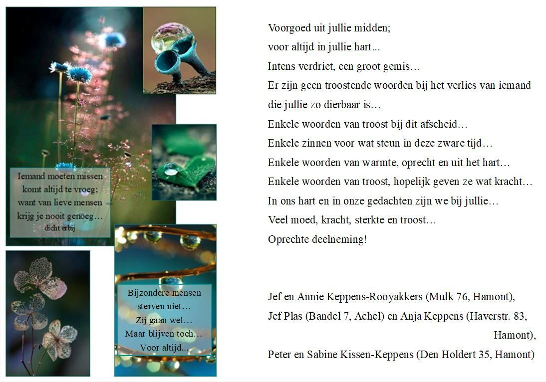Onze oprechte deelneming, veel sterkte in deze moeilijke dagen.