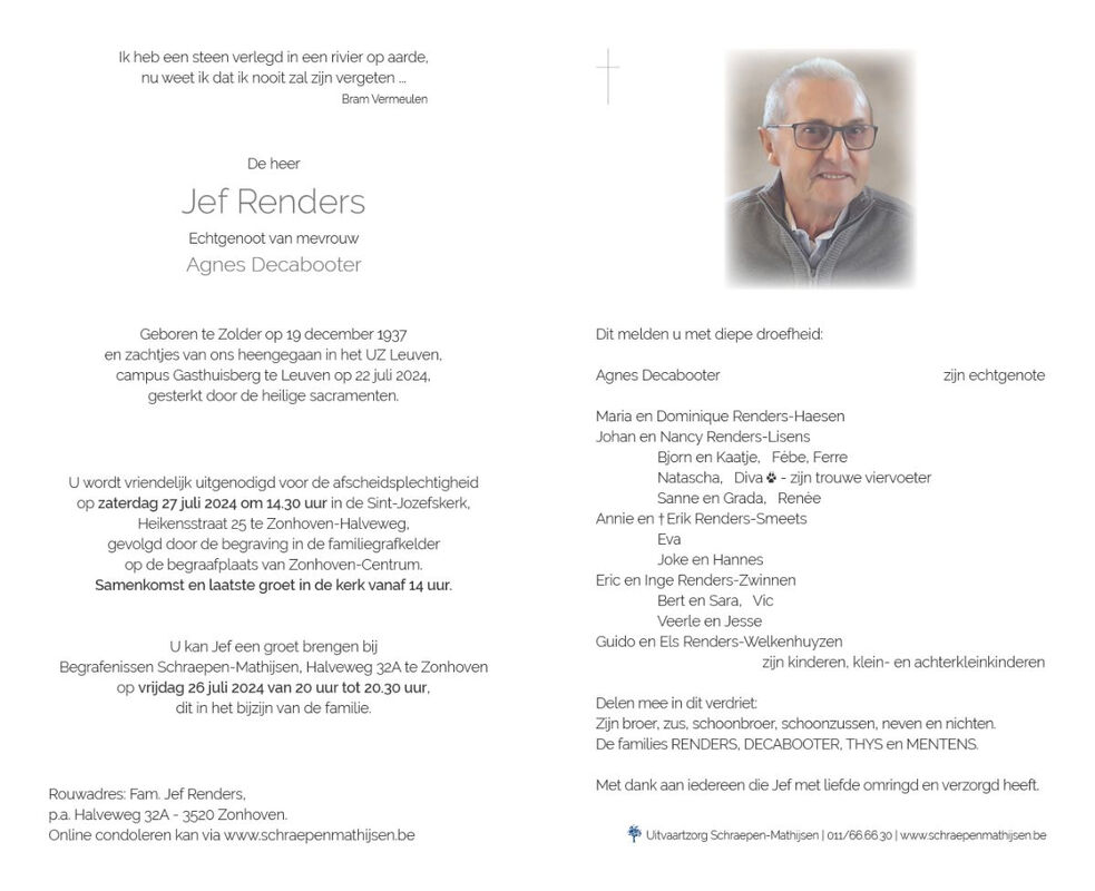 De vereniging deelt in de smart van de familie bij het overlijden van Jef