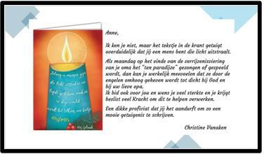 Mijn christelijke deelneming en waardering voor de tekst van kleindochter Anne