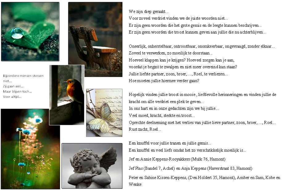 Hopelijk vinden jullie de kracht om alle verdriet een plek te geven en vinden jullie troost in mooie herinneringen.
