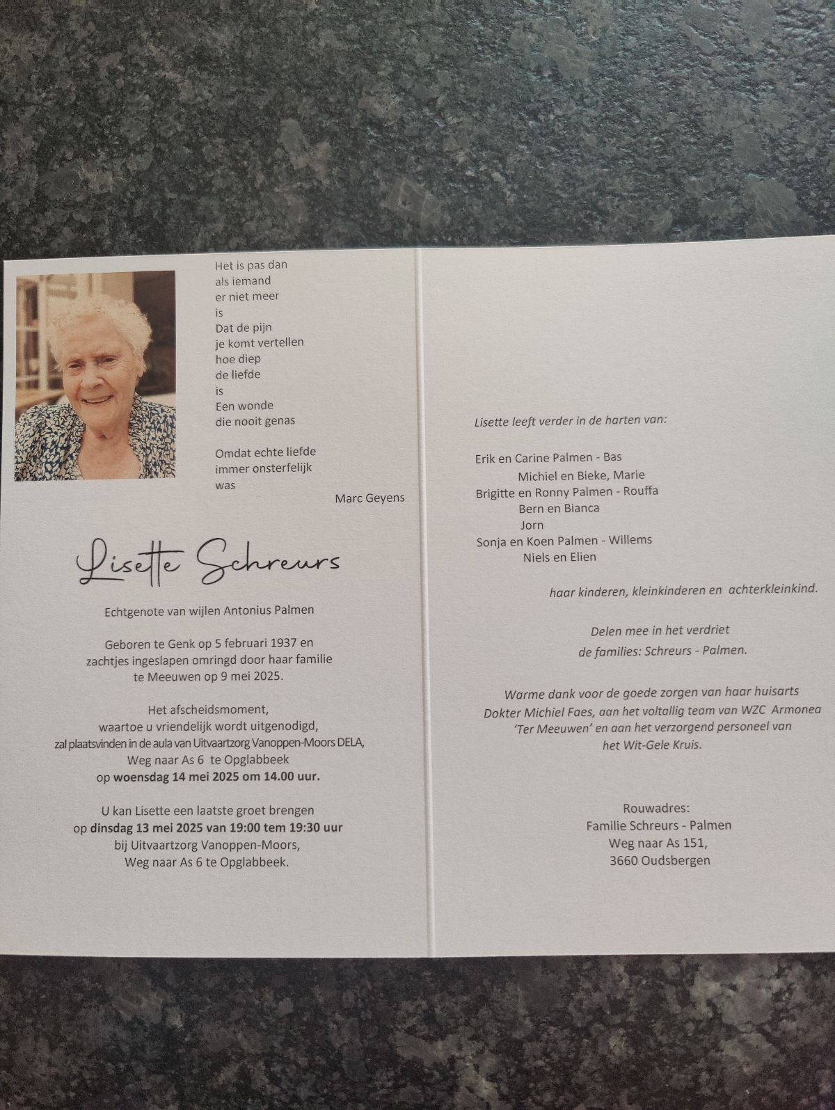 Innige deelneming en veel sterkte aan jullie allen