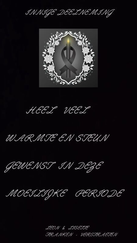 Heel veel sterkte met het overlijden van jullie geliefde echtgenote ,moeder en oma ,tot onze spijt wisten wij vandaag pas dat ze overleden was 💖