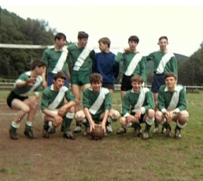 Jean als keeper van het derde middelbaar van het Heilig Hart College van Maasmechelen n Stavelot in mei 1966 met boven Paulissen , Roosen, Jean Mostert, Moonen, Slijpen en