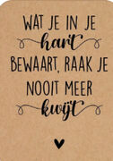"Wat je in je hart bewaart, raak je nooit meer kwijt!"