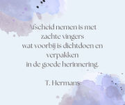 Ik had de tranen die ik om je liet, willen vangen in een glas. Zodat de radeloosheid van verdriet, voor mij heel even tastbaar was...