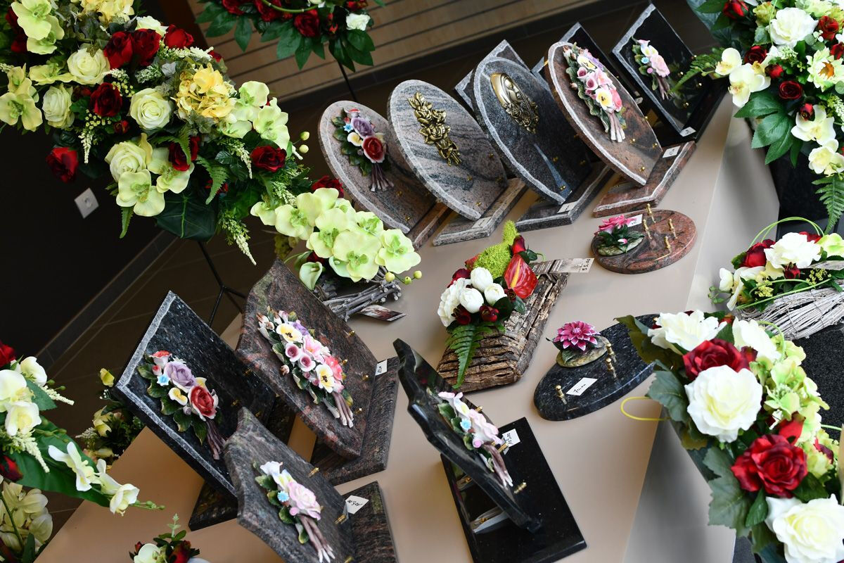 Notre Centre funéraire vous propose aussi un large choix d’urnes, plaques personnalisées, fleurs naturelles ou artificielles, etc.