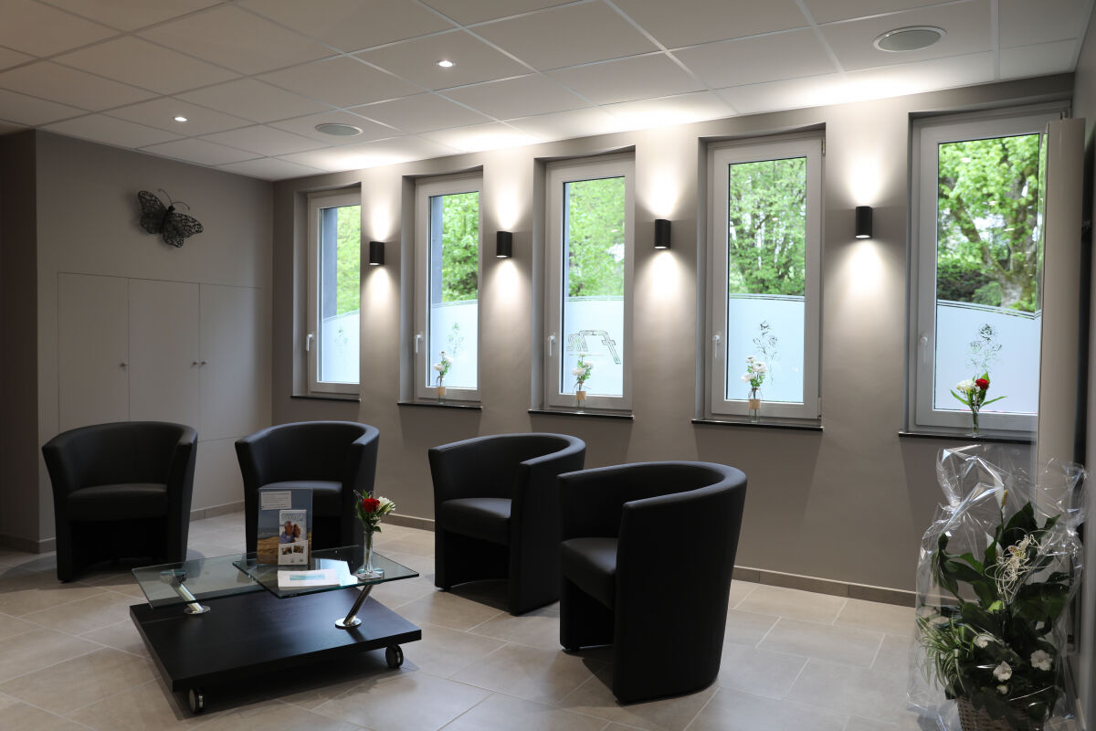 Nos salons funéraires respirent le calme et la sérénité. Ils offrent un confort qui facilite le recueillement de vos proches dans les moments difficiles. Vous avez la possibilité de recevoir votre famille, vos amis et connaissances dans l’espace privé et partager un moment de réconfort.